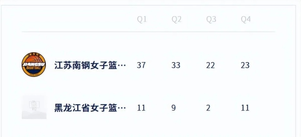 全场比赛,江苏6人得分上双,而黑龙江全队仅得33分,其中田洋洋和许一卓各得12分。